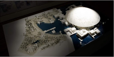 Simultáneamente a la apertura del Louvre en Lens, el museo francés está preparando la apertura de otra sede en Abu Dhabi, dentro del complejo que se está realizando en la isla de Al Saadiyat ( isla de la Felicidad). El edificio, que cuenta con una extensión de 24.000 m², es obra del premio Pitzker francés Jean Nouvel. El proyecto caracterizado por una enorme cúpula rebajada, construida en base a una celosía árabe, rematará el skyline de la isla junto con el edificio que Frank Gehry está construyendo en el mismo ámbito y que albergará una sede de la marca Guggenheim. Estos dos edificios de carácter emblemático se ubican en un complejo de hoteles, residencias y centros culturales, entre ellos cinco teatros y una ópera, conectados mediante un exclusivo aeropuerto y un puerto deportivo de lujo, lo que convierte la operación en un megaproyecto inmobiliario muy alejado de la altruista difusión cultural.