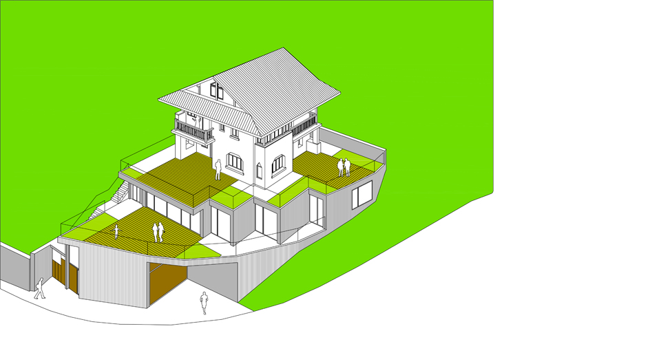 Este proyecto opera en un contexto predeterminado por el valor de la arquitectura existente. Se trata de una Villa catalogada perteneciente al «Regionalismo Neovasco» construida en el año 1927 por el arquitecto Urbano de Manchobas. Con estas condiciones de entorno, debemos ampliar el edificio con un nuevo volumen para ubicar una nueva vivienda manteniendo intacta la envolvente original. Se trata de proponer un elemento nuevo dentro del proceso continuado que ha generado ese entorno. No existe el papel en blanco. Citando a Oteiza, el que avanza creando algo nuevo lo hace como un remero, avanzando hacia delante pero rema de espaldas, mirando hacia atrás, hacia el pasado, hacia lo existente para poder reinventar sus claves.
