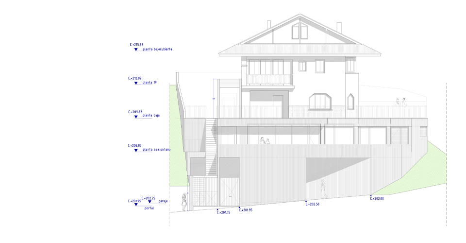 This project deals with an existing context predetermined by the value of its architecture. It´s a Villa classified as «neo-Basque regionalism» architectural heritage built in 1927 by architect Urbano de Manchobas. Under these circumstances, we should solve the expansion of the existing building with a new volume, but keeping intact the original closing facade. It requires proposing a new element in the ongoing process that has been generated this environment. There is no blank paper. Citing Oteiza, those who progress creating something new, they do it as a rower, moving forward but rowing looking back, looking back at the past, towards what exists, for being able to reinvent their keys.