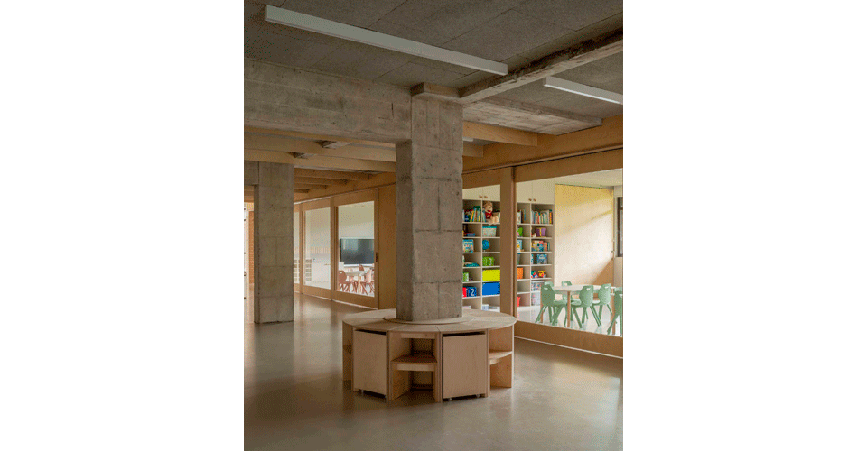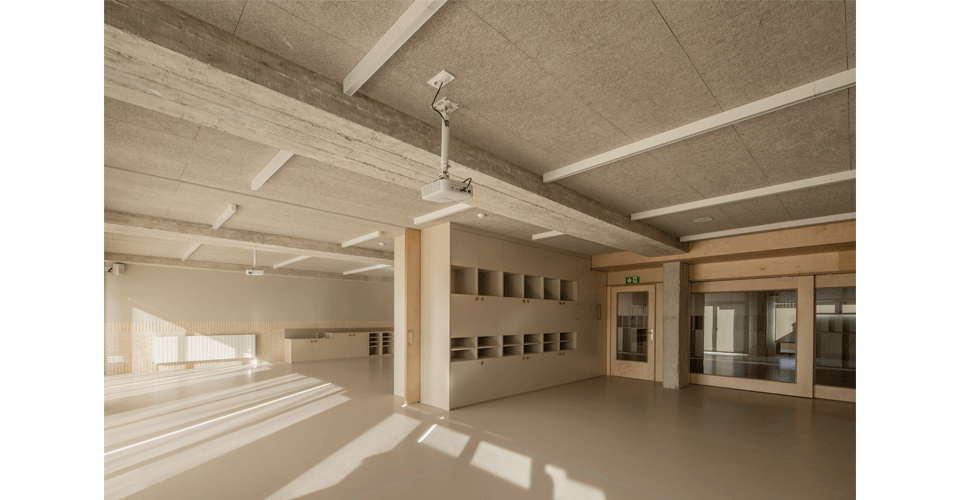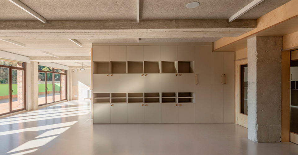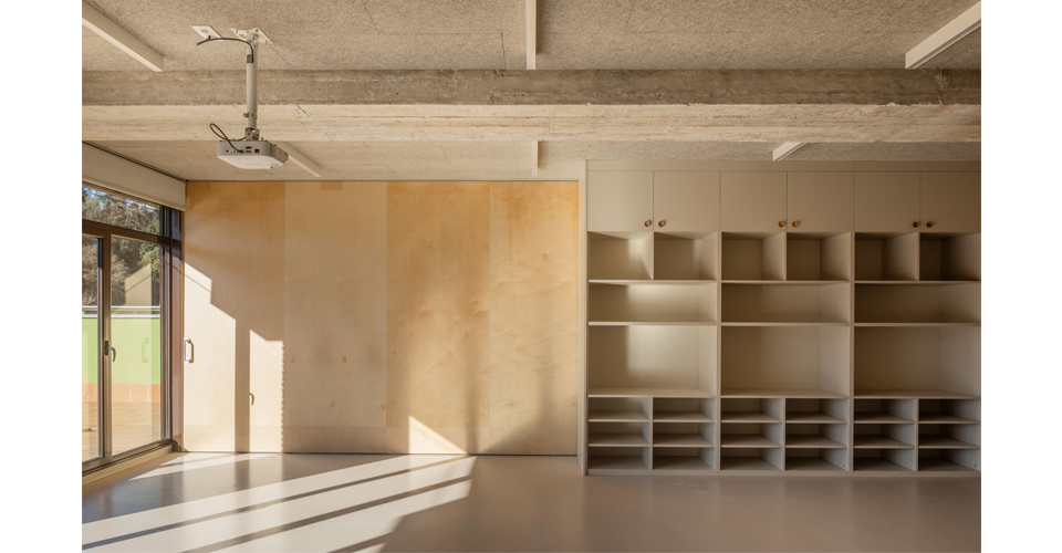 La flexibilidad a dos escalas permite conectar cada par de aulas entre sí, y a su vez las aulas con el espacio-plaza vertebrador, poniendo en valor el espacio común compartido.